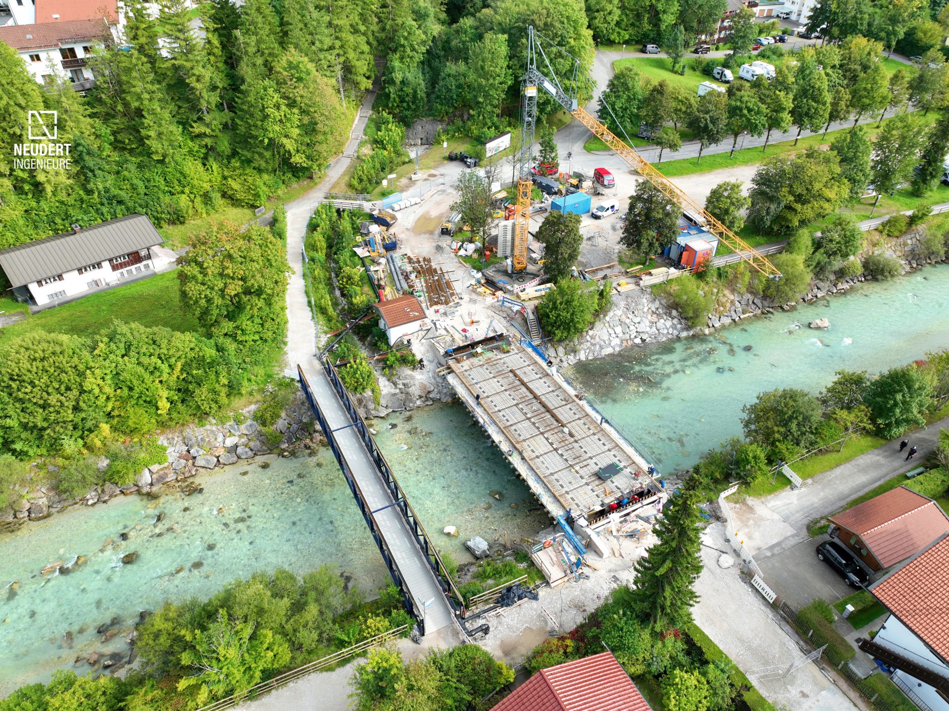 Neue Isar-Brücke in Mittenwald: Stahlträger eingehoben