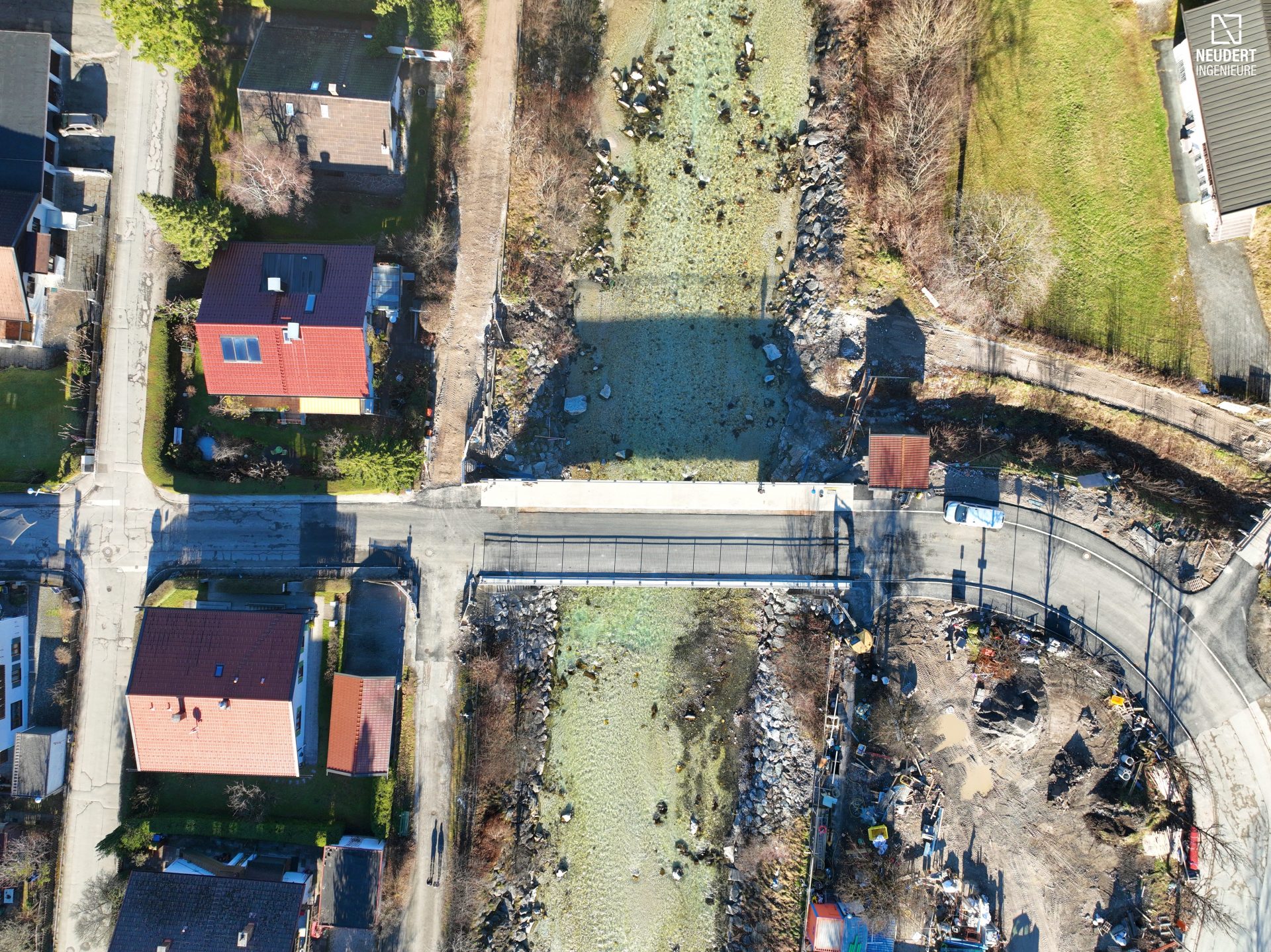 Mit der Fertigstellung der Brücke ist die Erreichbarkeit der angrenzenden Bereiche wieder gewährleistet und die infrastrukturelle Verbindung dauerhaft gesichert.